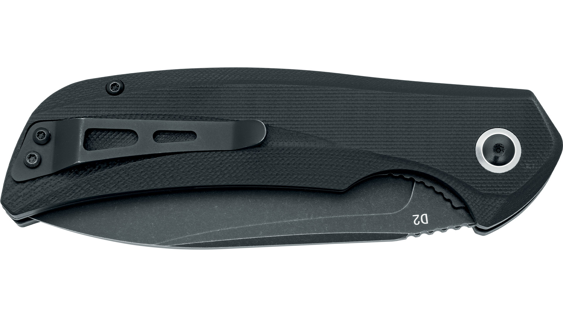 Robustan, pouzdan i dizajniran za zahtevnu upotrebu, ovaj preklopni nož je idealan izbor za korisnike koji traže izdržljivost i maksimalnu kontrolu. Sečivo je izrađeno od D2 alatnog čelika, tvrdoće HRC 59–61, koji je poznat po izuzetnoj otpornosti na habanje i dugotrajnom zadržavanju oštrine.