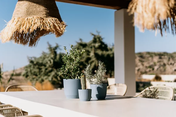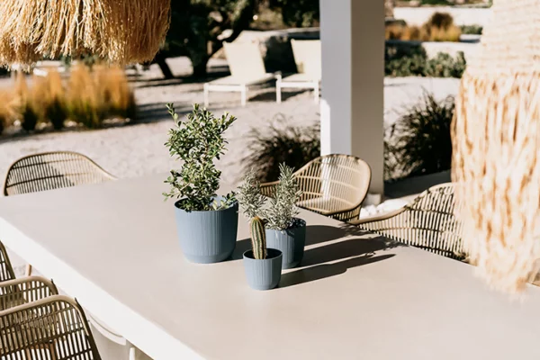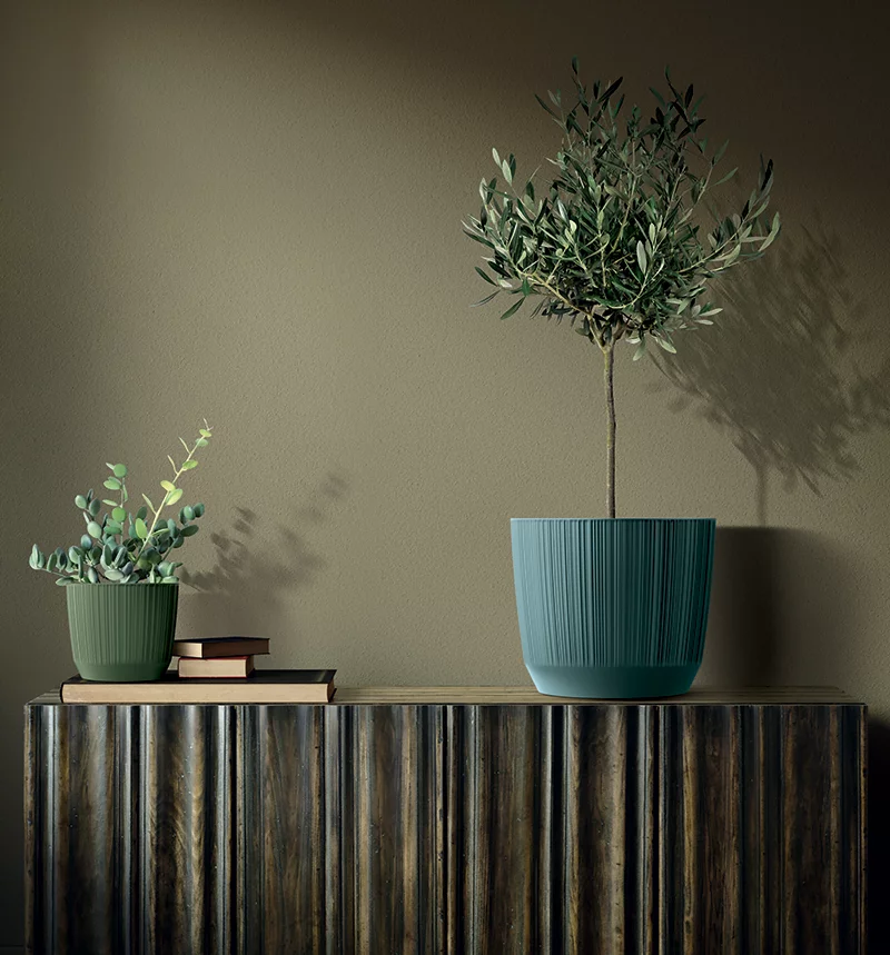 Okrugla saksija koja, svojom zanimljivom teksturom, prekida monotoniju u svakom prostoru. Horizontalne linije formirane na saksiji čine je izvanrednom.